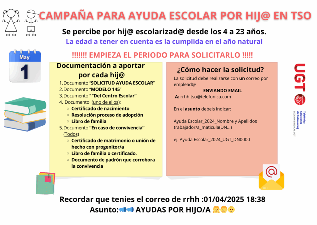 Buenos días compañeras y compañeros, os recordamos que tenemos el plazo abierto para solicitar la ayuda escolar, que no se os pase la fecha!